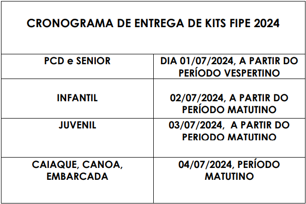 Cronograma de Entrega de Kits do 41º FIPe